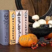 When used as props on a mantel or bookshelf, these cleverly wrapped books are fun additions to Halloween decor. Cut lengths of paper to wrap around the books, and fold the edges over the insides of the front and back covers. Decorate the spines with Halloween stickers. Dont forget the titles. Spell creepy book names along the spines using a stencil or print from a computer.