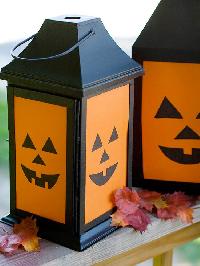 No mess, no carve These lanterns are the perfect almost pumpkin. Cut out smiling jack o lantern faces from black cardstock; tape to orange cardstock cut to fit the lantern panels. Use indoors or in a protected outdoor space.