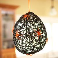 Your elementary school kids will have a blast weaving this Halloween web a tangled creation made from black yarn . Orange plastic spiders up the creep factor of this Halloween decoration.