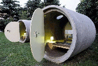 This interesting blend of modern decor and concrete sewage pipes is situated right along the banks of the Danube in the Austrian city of Linz. Each segment weighs about 9.5 tons, so you don t have to be too concerned about your friends rolling you into the river at night.