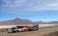 Dubbed the hotel on wheels it goes to and fro across the continent of South America, shuttling weary travelers up mountainsides and across deserts. Don t let the exterior fool you though, it comes fully equipped with 30 beds, hot showers, and continental breakfasts.
