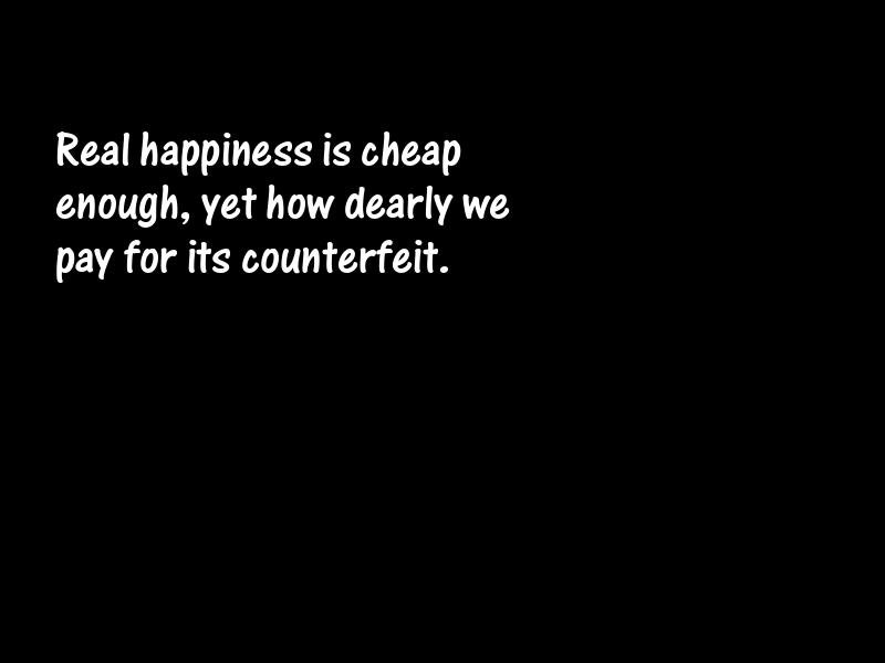 Real happiness is cheap enough, yet how dearly we pay for its counterfeit.