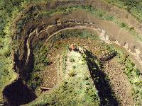 The cliff has a more steep slope here than at other caves, so to achieve a tall grand facade it was necessary to cut far back into the slope, giving a large courtyard in front of the facade. There was originally a columned portico in front of the present facade, which can be seen half intact in the 1880s in pictures of the site, but this fell down completely and the remains, despite containing fine carving, were carelessly thrown down the slope into the river, from where they have been lost, presumably carried away in monsoon torrents.