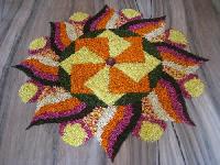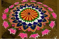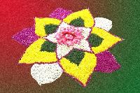 This style shows how flowerpetals, buds, leaves and grass can be used to make beautifulrangolidesigns. These are perfect for any occasion to addcolourto your home. The main attraction of this design is thecenterpattern comprising of several lotus flowers.