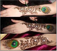 This Bombay style mehndi design is specially etched, keeping the Valentine?s Day theme in mind ? it is based on the peacock feather pattern which is a symbol of love. This is favored by a lot of young love birds who want to impress their beaus.
