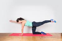 Balance on hands and knees. Lift right leg and left arm, extending right leg to the rear and reaching forward with left arm. Hold. Repeat with opposite arm and leg.