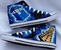 If you have an interest in British science fiction dramas then you definitely cannot go wrong with this Doctor Who inspired Cons. The shoes are basically the classic Converse hi cut Chuck Taylors which are designed after the iconic Doctor Who TV program. It shows the Tardis police box which the doctor uses in order to travel back and forth in time along in order to save civilizations and help people by correcting wrongs. If you are a fan of this enigmatic series or if your kid is then you will definitely want to get this doctor who inspired Chucks to travel in time with.