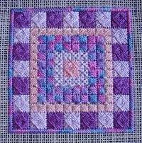 Bargello is a type of needlepoint embroidery consisting of upright flat stitches laid in a mathematical pattern to create motifs. The name originates from a series of chairs found in the Bargello palace in Florence, which have a flame stitch pattern.Traditionally, Bargello was stitched in wool on canvas.Embroidery done this way is remarkably durable. It is well suited for use on pillows, upholstery and even carpets, but not for clothing. In most traditional pieces, all stitches are vertical with stitches going over two or more threads.