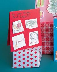 Heres a new twist on the familiar refrigerator cum art gallery: Let kids turn their drawings into magnets that can be used all year long. They can draw helpful refrigerator reminders or a Christmas tree and ornaments. Print onto magnet sheets, and cut out. To give magnets as presents, affix them to a greeting card with double sided tape.