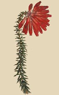The Erica cerinthoides is one of the most magnificent and shewy of the genus, grows wild at the Cape, from whence it was introduced to the royal garden at Kew, by Mr. Masson, in 1774, it is the more valuable, as it flowers during most of the year its blossoms are found to vary from a deep to a very pale red. It is a hardy green house plant, and usually propagated by cuttings.To have this beautiful tribe of plants in perfection, they must be kept in pots proportioned to their size, filled with that kind of bog earth in which our British heaths grow spontaneously, finely sifted, to which it may be necessary sometimes to add a third part of the mould of rotten leaves, or choice loam, partaking more of a clayey than a sandy nature we must be careful not to let them suffer for want of water in dry hot weather, as such an omission, even for one day, may be fatal, and to give them as much air as possible at all times when the weather is mild.