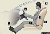 Use a back support (lumbar roll) at the curve of your back. Your knees should be at the same level or higher than your hips.Move the seat close to the steering wheel to support the curve of your back. The seat should be close enough to allow your knees to bend and your feet to reach the pedals.