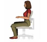 Sit up with your back straight and your shoulders back. Your buttocks should touch the back of your chair.All three normal back curves should be present while sitting. A small, rolled up towel or a lumbar roll can be used to help you maintain the normal curves in your back.Heres how to find a good sitting position when youre not using a back support or lumbar roll Sit at the end of your chair and slouch completely. Draw yourself up and accentuate the curve of your back as far as possible. Hold for a few seconds. Release the position slightly (about 10 degrees). This is a good sitting posture.Distribute your body weight evenly on both hips. Bend your knees at a right angle. Keep your knees even with or slightly higher than your hips. (use a foot rest or stool if necessary). Your legs should not be crossed.Keep your feet flat on the floor.Try to avoid sitting in the same position for more than 30 minutes.At work, adjust your chair height and work station so you can sit up close to your work and tilt it up at you. Rest your elbows and arms on your chair or desk, keeping your shoulders relaxed.When sitting in a chair that rolls and pivots, dont twist at the waist while sitting. Instead, turn your whole body.When standing up from the sitting position, move to the front of the seat of your chair. Stand up by straightening your legs. Avoid bending forward at your waist. Immediately stretch your back by doing 10 standing backbends.