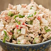 A serving of tuna canned in water boasts a whopping 39 grams of protein for just 179 calories. Problem is, most people add mayo, which tacks on an additional 90 calories and 10 grams of fat per tablespoon.