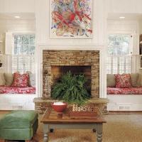 An inglenook is a space next to the fireplace that often includes seating. These built in window seats provide extra seating and are a comfy place to read.