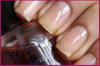 The third step starts once the base coat dries completely. Apply a coat of pink polish and purple polish (on ring finger). Repeat this twice.