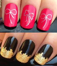 There are several ready to use nail art designs available in market like Water decals, Nail stickers and full nail wraps. Instructions for applying these are generally mentioned on them and are quite easy for beginners.