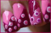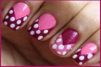Give a good finishing touch to the dots. Dip a toothpick in pink polish and draw a dot inside each white dot on all fingers except the ring finger. Use a purple polish for the ring finger. The picture below shows how the dots would look.