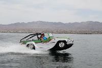 You want a car that goes fast, a car that looks unique, a car that can transition into a speed boat in seconds. Well, there s a car for you the Sea Lion prototype: the world s fastest amphibious land speed vehicle. Actually, it s not technically a car. Witt himself, the designer of car, calls it an Amphibious World Speed Record Competition Vehicle. It was designed to set world records on land and on water. On the road, the Sea Lion clocks in at 125 mph (201 km/h). Not terribly impressive, but it s off the road where the Sea Lion shines. In the water, meanwhile, it can reach respectable speeds of as much as 60 mph (96 km/h). The body of the Sea Lion was made by using TIG welded 5052 aluminum and CNC milled.