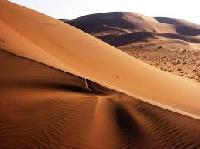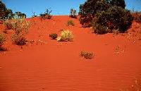 The Simpson Desert is a large area of dry, red sandy plain and dunes in Northern Territory, South Australia and Queensland in central Australia.It is the fourth largest Australian desert, with an area of 176,500 km? (68,100 sq mi) and is the worlds largest sand dune desert.The desert is underlain by the Great Artesian Basin, one of the largest inland drainage areas in the world. Water from the basin rises to the surface at numerous natural springs, including Dalhousie Springs, and at bores drilled along stock routes, or during petroleum exploration. As a result of exploitation by such bores, the flow of water to springs has been steadily decreasing in recent years. It is also part of the Lake Eyre basin.The Simpson Desert is an erg which contains the worlds longest parallel sand dunes. These north south oriented dunes are static, held in position by vegetation. They vary in height from 3 metres in the west to around 30 metres on the eastern side. The largest dune, Nappanerica, is 40 metres in height.