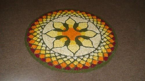 Heres another floral rangoli. The very small details and the flower pattern in thecenterare sure to capture attention.