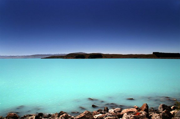 This may be as relaxing as it gets. Various shades of blue come to life in this view of Pukaki, a glacial lake in New Zealand. The alpine lake, which sitsalongside Lakes Tekapo and Ohau, was carved out long ago by glaciers. Its striking blue color comes from the finely ground rock particles called glacial flour from the glaciers that now feed it.