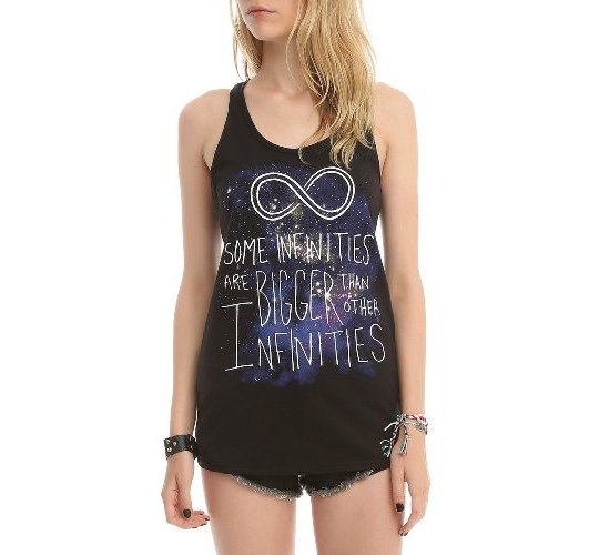 FromThe Fault in Our Starsby John Green:Some infinities are bigger than other infinities. This black racertank top is made of imported100% cotton.