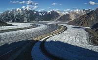 The Kaskawulsh Glacier flows into the Yukon Territorys Kluane Lake, with 80% of the glaciers meltwater reaching the lake. The remaining 20% flows into the Pacific Ocean via the Kaskawulsh and Alsek Rivers.