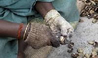 This is the most difficult operation in cashew processing. In India shelling is mostly done by cheap female labour. Shelling is carried out by using special wooden mallets and pieces of bent wire, at a rate of about 200 nuts per hour.