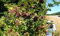 Elder is a large shrub or small tree that grows up to 30 feet tall in wet or dry soil in a sunny location. Elder is native to Europe, Africa, and parts of Asia, but it has become widespread in the United States. Deciduous leaves grow in opposite pairs and have five to seven leaflets. Flowers are white and flattopped with five primary rays. Berries are green, turning red, then black when ripe.