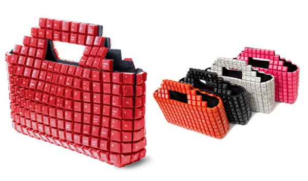 This funky bag was created using 393 randomly arranged old computer keyboards keys.