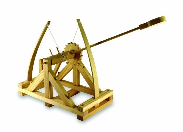 In the middle ages, catapults were fascinating, highly sophisticated weapons. Let your tech savvy friends build their own, fully functioning, scale model of Leonardo Da Vinci catapult. Upon the completion, it will be able to fling soft clay balls (included in the package) up to 15 feet.