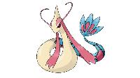 Milotic is an aquatic Pokemon and is evolved from Feebas when leveled with its Beauty or when traded holding a Prism scale. It is a serpentine Pokemon with a cream colored torso. It has red eyes with pinkish long antennae just above the eyes. It also has hair like long fins above its eyes which are thin at the beginning but thicken near the tips. It is considered to be one of the world s most beautiful Pokemon. It has also been depicted in many works of art. Since it evolves from the most difficult Pokemon to find, it is considered a jewel for its battle abilities, beauty and rarity. During a fight it has the power to calm annoyed feelings and end quarrels by releasing energy. It can float in the air but lives in the large lakes.