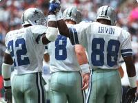 Nicknamed the Triplets, quarterback Troy Aikman, running back Emmitt Smith and wide receiver Michael Irvin led the revival of America s Team as the Dallas Cowboys won three Super Bowls in a four year span in the 1990s. Taken in the first round in three successive drafts (1988 90), the Triplets were the center piece of a rebuilding project by new owner Jerry Jones and coach Jimmy Johnson. Fittingly, they were all three inducted into the Pro Football Hall of Fame.