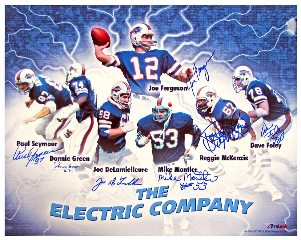 The Electric Company was the nickname of the offensive line of the Buffalo Bills during the mid 1970s that helped running back O.J. Simpson establish numerous National Football League (NFL) all time records and earn numerous statistical titles. The nickname is sometimes more loosely used to refer to the Electric Company Offense for the Bills offensive unit or the Electric Company Buffalo Bills for the teams of this era. The players are pictured above.