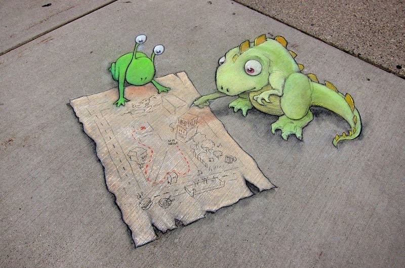 This guy has taken small format chalk interventions to a whole new level through the clever usage of urban accidents and a charismatic cast of characters.