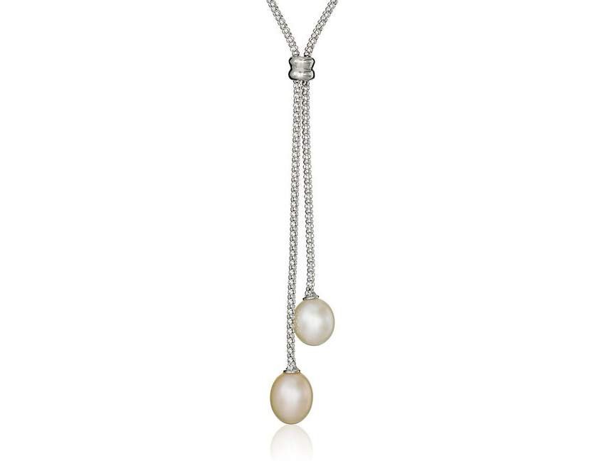 This pearl pendant is elegant and understated. This style is available in a couple of different options. You can get the necklace with two white pearls, or with one white pearl and one black pearl. The version pictured above has one white pearl, and one pink pearl. If youd like to get her something with more pearls, browse more pearl jewelry designs here.