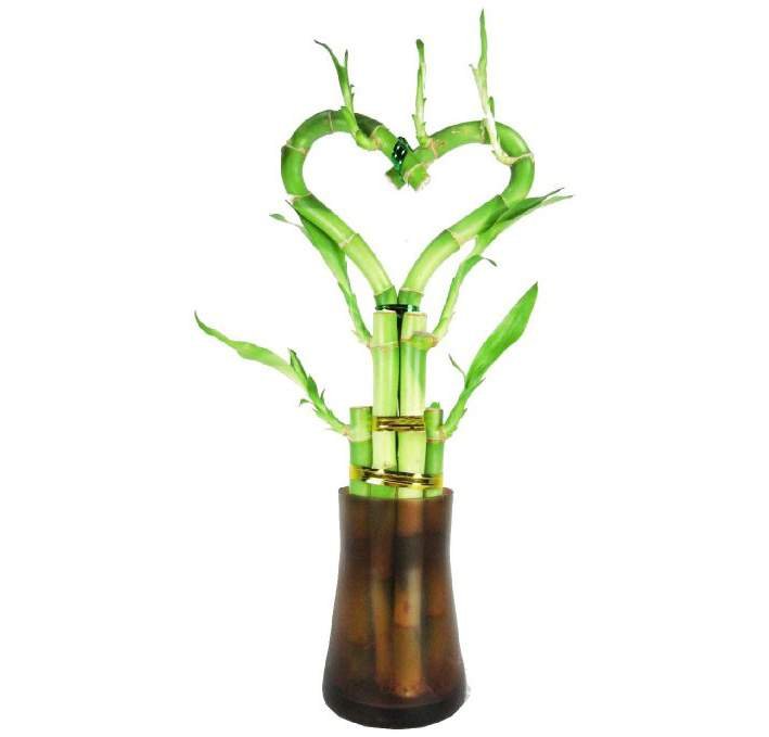 Heart Shape Lucky Bamboo Plant With Tall Glass Vase