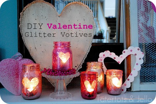 Valentines Day is all about decorations. You can decorate each and every part of the place that you are going to spend with your dear one. You can start with making some glitter mason jars. These can be arranged on a table to add that special romantic touch to your day. All you may need is a few pet jars and some glitter. You can cut out a heart shape in gold color and place it inside the jar. Fill it up with red glitter, light up a small candle and then see the effect. About 4 to 5 pet jars decorated this way can do the trick. You can use a few heart shaped cardboard cut outs in the background to enhance your decoration.