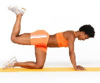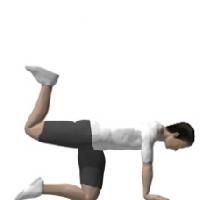 Starting on the hands and knees, keep a flat back and engage the core. Raise the left leg straight back, stopping when the foot is hip-level and the thigh parallel to the floor. Balance for as long as possible, then raise the bottom right toe off the floor, tightening the butt, back, and abs.