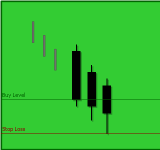 3. On the second day a small body at the lower end of the trading range is observed. Color of this body is not important.
