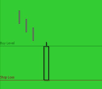 The confirmation level is defined as the last close. Prices should cross above this level for confirmation. The stop loss level is defined as the last low. Following the BUY if prices go down instead of going up and close or make two consecutive daily lows below the stop loss level while no bearish pattern is detected then the stop loss is triggered.