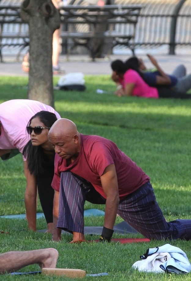 Russell Simmons, for his age might not be able to undergo heavy work out sessions at the gym. But since he must keep himself fit, it is good that Simmons has taken to doing yoga on a regular basis. And judging by his fit physique in this image, there is no doubt that yoga has truly helped him a great deal in maintaining himself. In this image, it looks as if Simmons is performing the Suryanamaskar i.e. worship to the God of Sun via yoga. This yoga exercise is said to be extremely powerful and invigorating for it rejuvenates every part of the body through its seven steps.