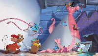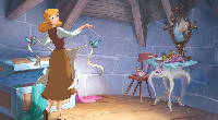7. While Cinderella was working, the mice and birds fixed her dress. They added ribbons and beads that the two stepsisters had thrown away.Working together, the animals turned a simple dress into a fabulous gown! .....
