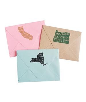 For the girl oozing with hometown pride, a customized rubber stamp with her address in the shape of her favorite state, of course.