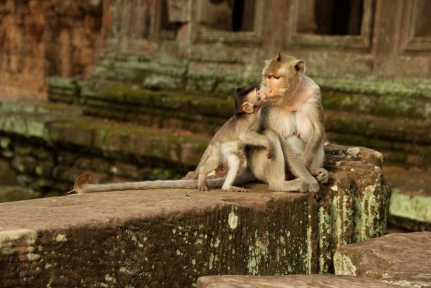 If you want to be loved, kissing is the key. Kissing makes bond between two individuals, of course, between two animals also. Kissing ensures that both of them love each other. A mother kisses her son to sooth him, the kid feels loved and energized. A couple kisses each other so that their relationship does not fizzle out. Even if the relationship has been fizzled out, you can get it back by kissing. Kissing is the quickest method and the surest method. It sets the tone for the day when done in the morning. Likewise it sets the mood of the night when done in the evening. Kissing can convert any boring relation into lively one. We can learn from this monkey who is kissing her child to make him loved and wanted.