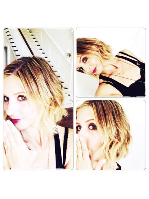 The actress and mom of two revealed this slick, piecey bob with a few playful shots posted to her?Twitter. She captioned the photo collage, Time for a change. Thanks@mararoszak?for cutting and@rachel_goodwin?and@TaraSwennen?for talking me into it.