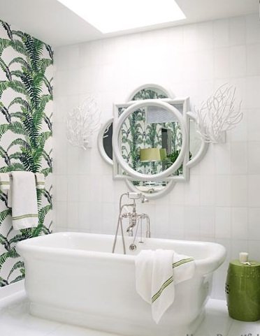 The tiles in this Georgia beach house bathroom shine.Many people use matte tiles these days, but the lustrous spa like finish of polished tile it feels expensive, says designer Jim Howard.