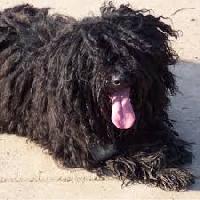 The Puli is a small-medium breed of Hungarian herding and livestock guarding dog known for its long, corded coat. The tight curls of the coat, similar to dreadlocks, make it virtually waterproof. A similar looking, but much larger Hungarian dog breed is called Komondor.