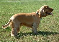 The English Cocker Spaniel is a breed of gun dog. The English Cocker Spaniel is an active, good-natured, sporting dog standing well up at the withers and compactly built. There are field or working cockers and show cockers. It is one of several varieties of spaniel and somewhat resembles its American cousin, the American Cocker Spaniel, although it is closer to the working-dog form of the Field Spaniel and the English Springer Spaniel.