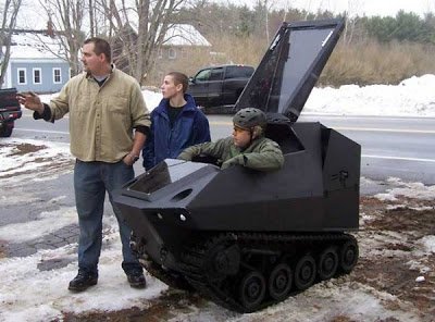 Built by Howe and Howe Technologies and measuring less than 1 meter (3 feet, 3 inches) wide, the PAV1 Badger is the smallest all terrain armored vehicle. It is powerful enough to break down doors but small enough to fit in a lift. It was commissioned by Civil Protection Services of California.